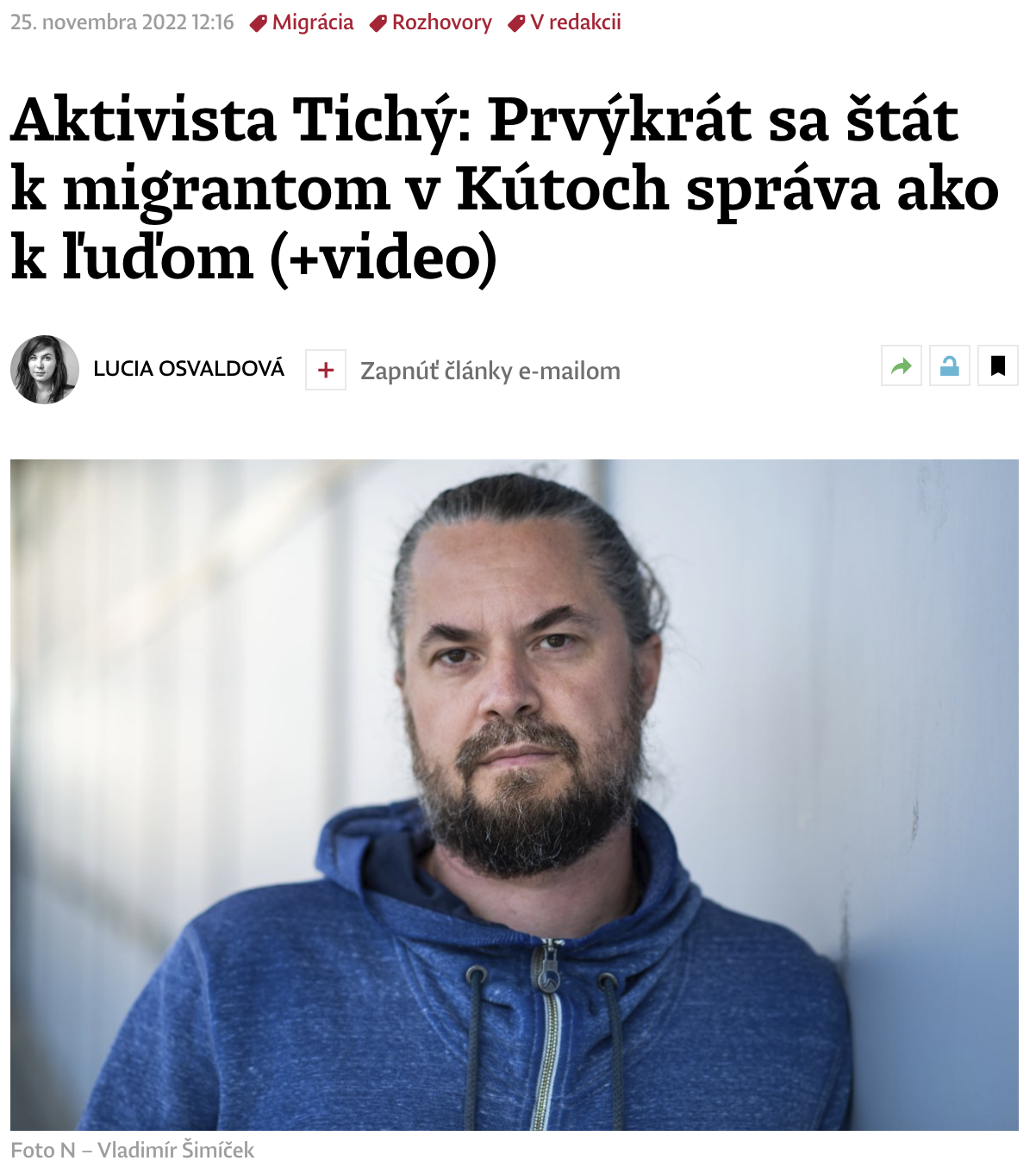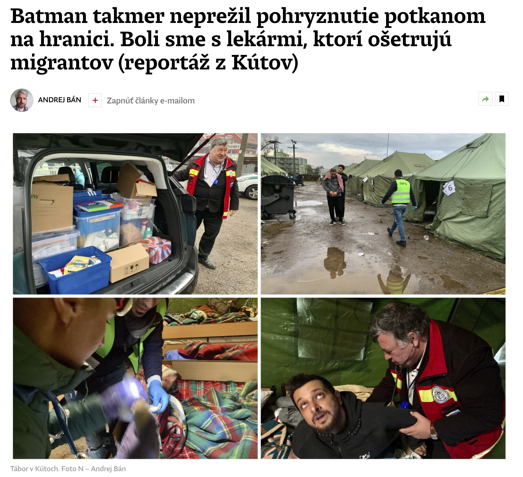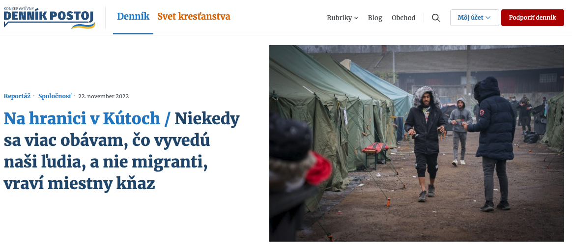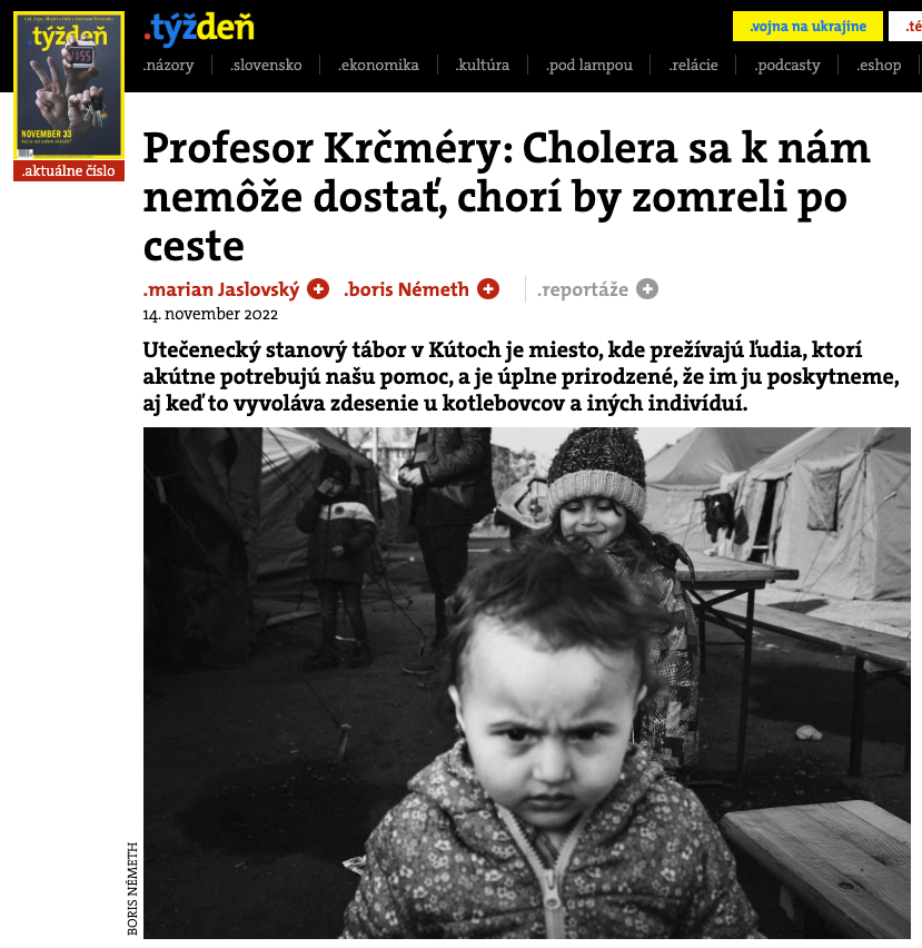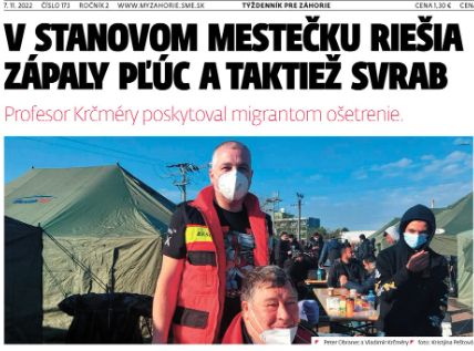 „Väčšinou majú povrchové rany a svrab, potrebujú hygienu. Vodu a umývadlá majú, od nás dostávajú masti alebo ivermektín, to keď majú rezistentný svrab. Škrabaním si tam zanesú stafylokoky, môžu byť aj smrteľné,“ vysvetľuje Krčméry pred tým, ako vynesieme z auta plastové nádoby s liekmi a liečivami. Vladimír Krčméry priviezol zdravotnícku pomoc. Odídenci z Ukrajiny majú na Slovensku nárok na zdravotnícku starostlivosť, títo migranti nie. Krčméryho tím ich ošetruje dobrovoľne... (celý článok tu)