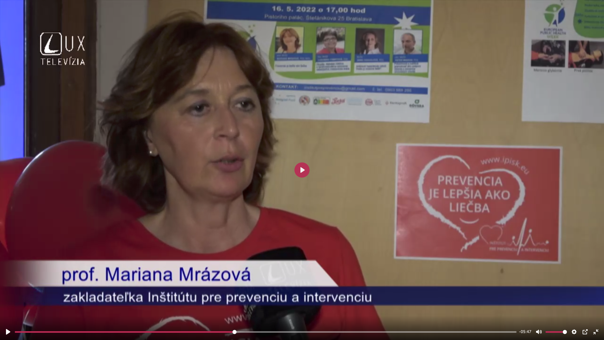 prof. Mariana Mrázová, zakladateľka Inštitútu pre prevenciu a intervenciu v spolupráci s VŠ zdarv. a soc. práce sv. Alžbety zorganizovali minikonferenciu - Prevencia je lepšia ako liečba (začiatok cca 6.min.)