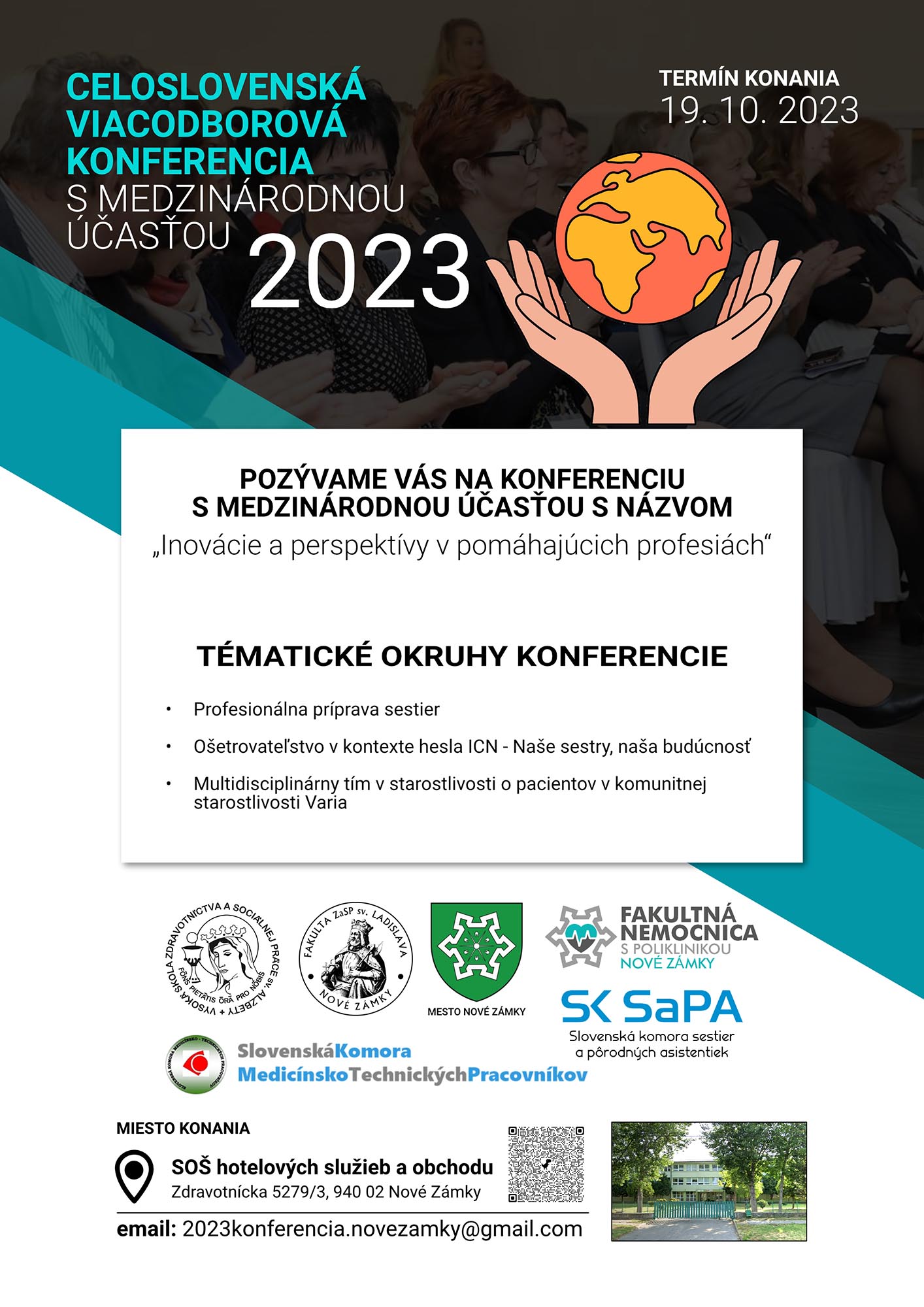 Pozývame vás na konferenciu s medzinárodnou účasťou s názvom „Sestra a pôrodná asistentka ako súčasť multidisciplinárneho tímu“ Termín konania: 14.11.2024 Miesto konania: SOŠ hotelových služieb a obchodu, Zdravotnícka 3, Nové Zámky (viac info tu)